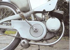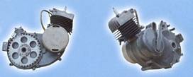 Einzylinder-Zweitakter, Zylinder 15° nach vorne geneigt, Zylinderlaufbahn in Spezialguss, Verdichtung 6:1 |